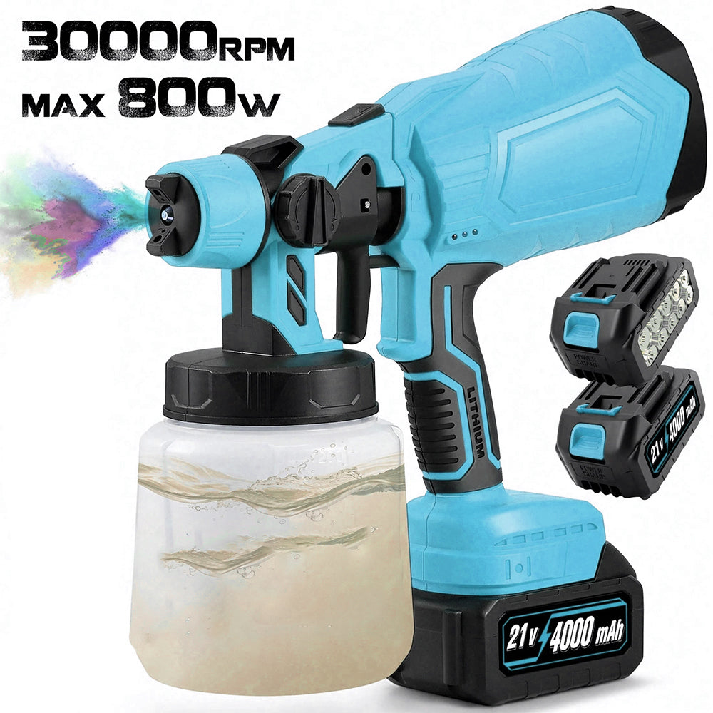 The cordless sprayer paint Pro is designed to solve all these common painting problems, providing a smooth, efficient, and pain-free experience for both DIYers and professionals.Cordless Paint Sprayer Large-capacity lithium battery for long-lasting and uninterrupted operation Use high-quality batteries to achieve breakthrough battery life and long-lasting use.Spray pattern adjustment and switching at willMulti-angle spraying can easily meet various needs